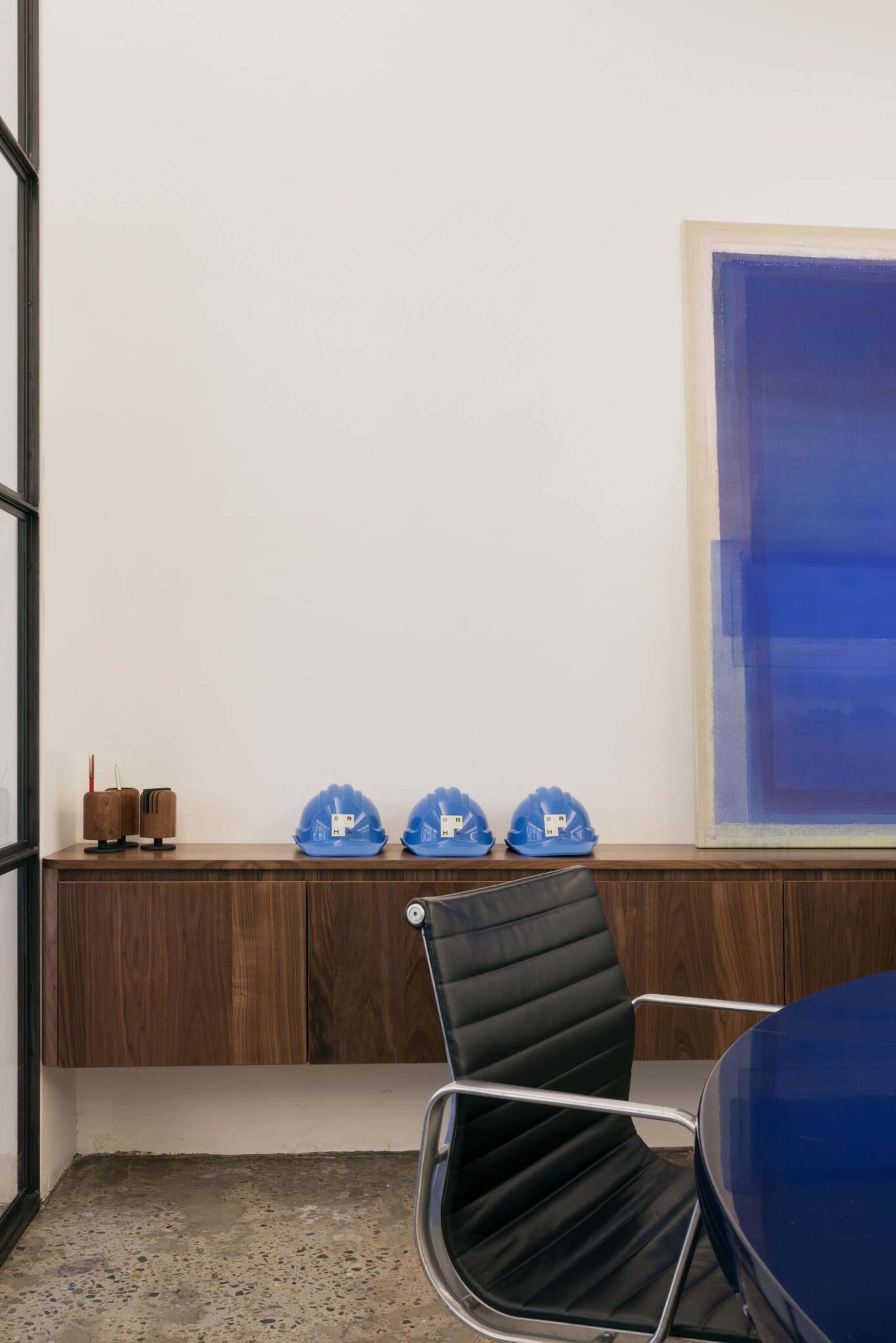 The material composition draws from the surrounding industrial context, combining polished concrete, warm timber accents, and raw finishes that express the building’s character. Throughout the studio, artworks by local artists introduce colour and texture, reinforcing the practice’s connection to community and creative culture. The result is a workspace that balances utility and craft—a setting that reflects SRH Architecture’s ethos of design grounded in place, materiality, and human experience.